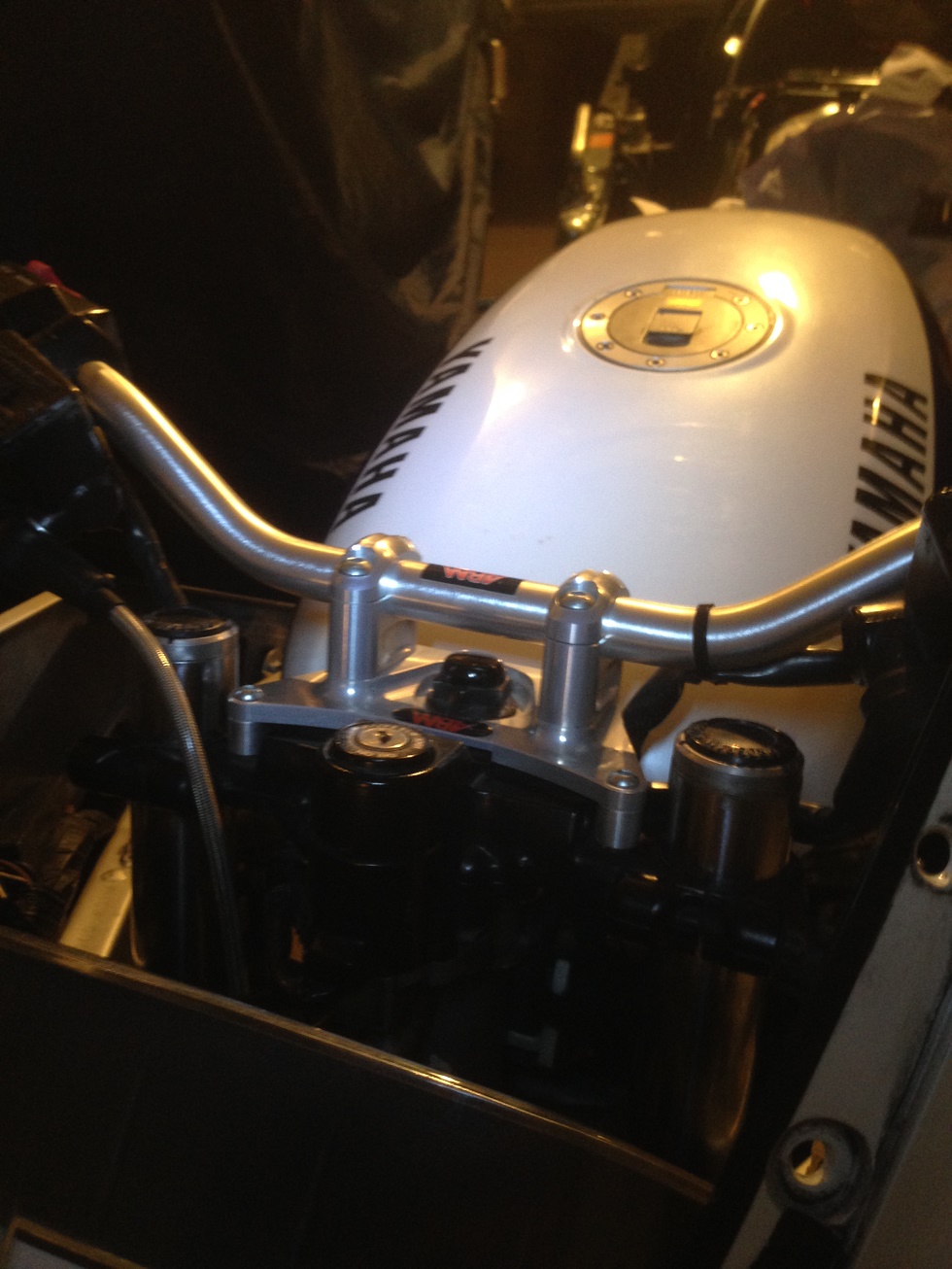 Alles in Allem ziemlich simpel und im Folgenden grob beschrieben. 1. Bremsanlage vorne komplett entleeren 2. Hohlschraube an der Bremspumpe leicht lösen 3. Alle Armaturen abbauen und die alten Lenkerenden demontieren plus die zentrale Hutmutter. 4. die Adapterplatte auflegen, Hutmutter locker aufschrauben, die Inbusschrauben setzen und mit 9 Nm andrehen. 5. dann die Hutmutter mit 110 Nm. 6. Lenker dran und alle Armaturen 7. Bremsleitung(en) austauschen 8. Bremse füllen und entlüften Die obere und untere Gabelbrücke muß NICHT gelöst werden !