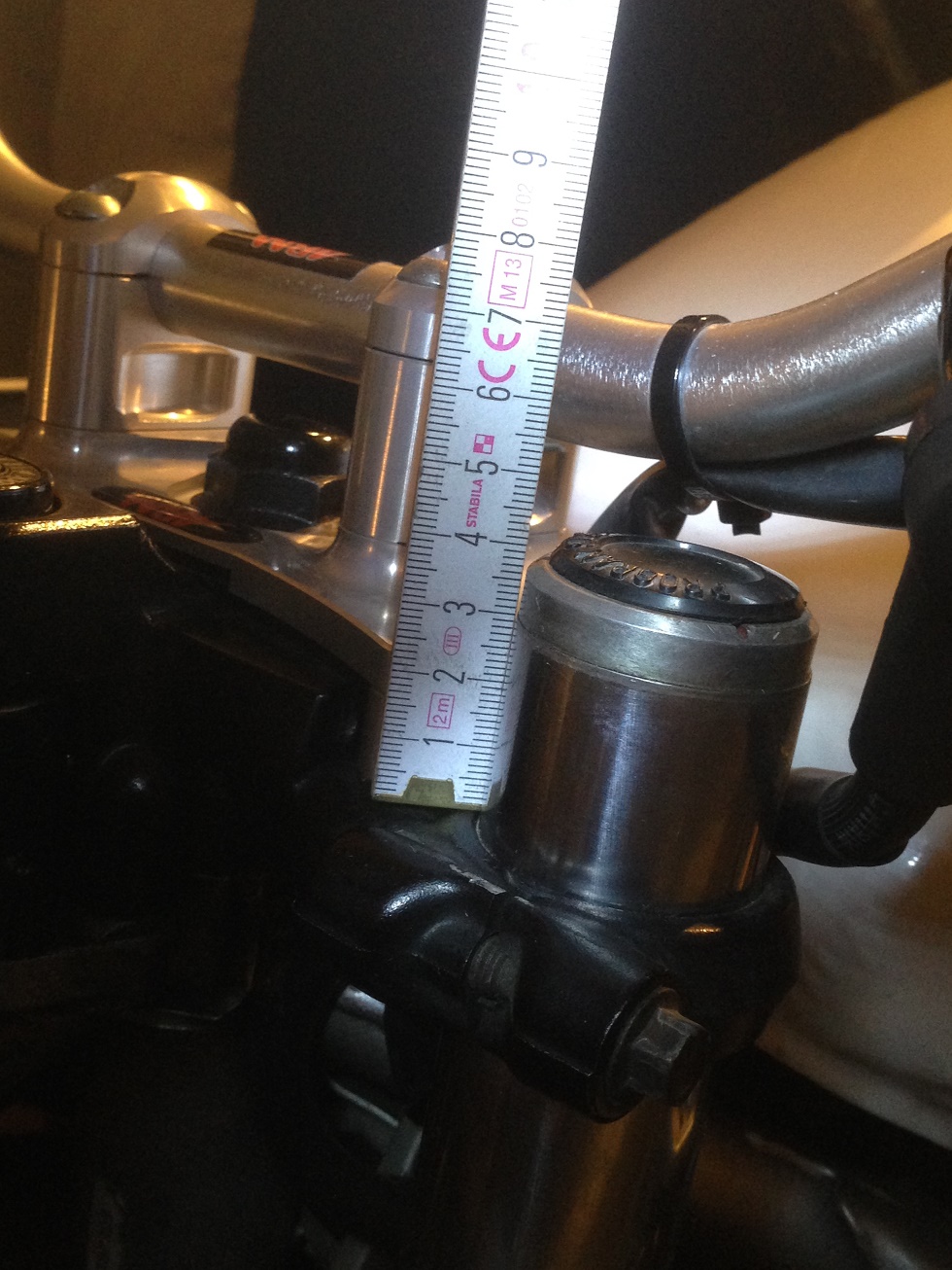 Hauptsache der Lenker kommt nen Stück nach hinten, denn sonst bleibt er an den Gabelbeinen "hängen" und geht niemals in die Aufnahme rein.