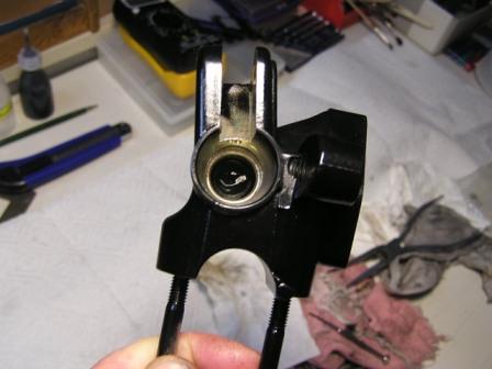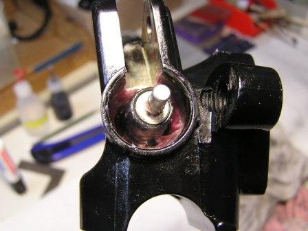 ACHTUNG: Das ganze dann noch mit etwas Fett versehen (Pic_11), den Stößel, die Staubmanschette und die Feder richtig zusammenbauen, das Bild zeigt die richtige Lage des Stößels (Pic_12), noch mal etwas Fett (Pic_13), die Teile in das Gehäuse einbauen und die Staubmanschette mit einem flachen Holzspatel (kein Schraubenzieher) vorsichtig hineindrücken (Pic_14). Hebel montiert (Pic_15), dabei drauf achten, daß das Stößel - Ende im Loch der kleinen Buchse am Hebel sitzt (a bisserl Fett auch hier), Schraube festziehen, Funktionsprüfung…..Fertig.