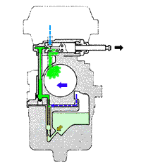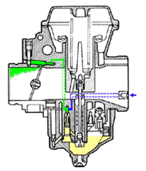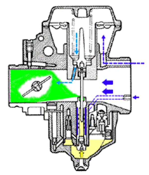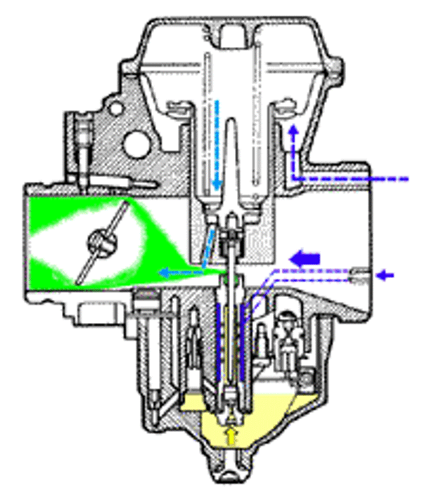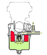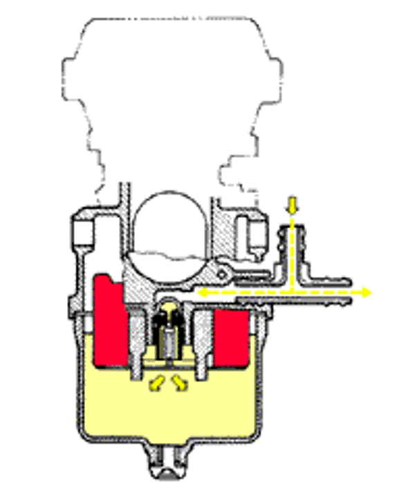 (gelb) gelangt über die Hauptdüse in der Schwimmerkammer