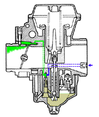 zur Leerlauf-Vordüse (links von der Hauptdüse) und wird
