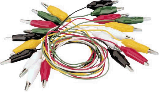 Im ersten und ausführlichen Bericht wurden die Krokodilklemmen erwähnt. Damit sind diese solche hier mit Kabel gemeint.