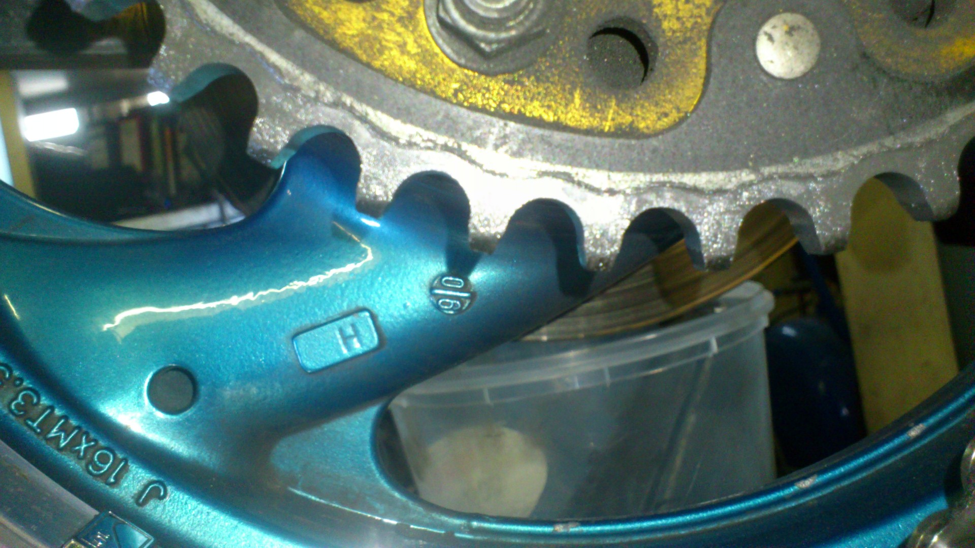 gut von außen erkennbar am "ausgewaschenen" Kettenrad
