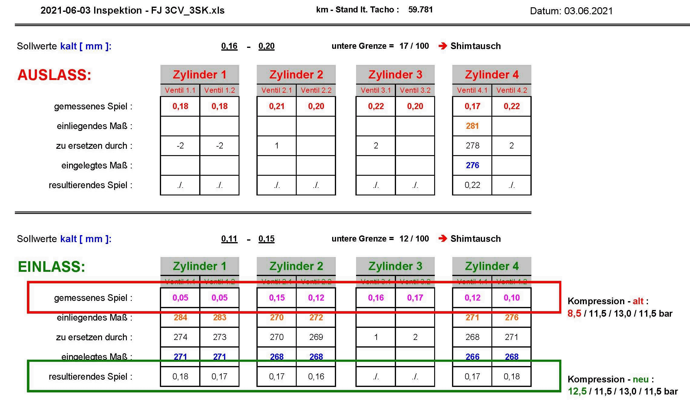 Spiel mit 5/100 mm an beiden Einlaß-Ventilen super gering und der