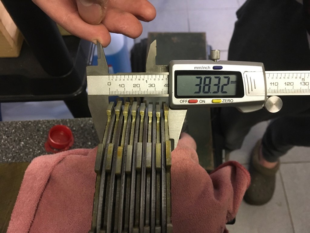 Bei der Hayabusa der Bj. ´99 - ´07 hat sich gezeigt, dass mit Einbau einer einzigen neuen (dickeren) Reiblamelle und einer einzigen neuen (dickeren) Stahlscheibe aus einer Hayabusa der Baujahre ab 2008 (beide sind nen müh dicker) das Rutschen ein Ende hat , weil dort dadurch das Mindestmaß (Busa - 50,5 mm) des Gesamtpaketes wieder erreicht bzw. ein klein wenig überschritten wird.