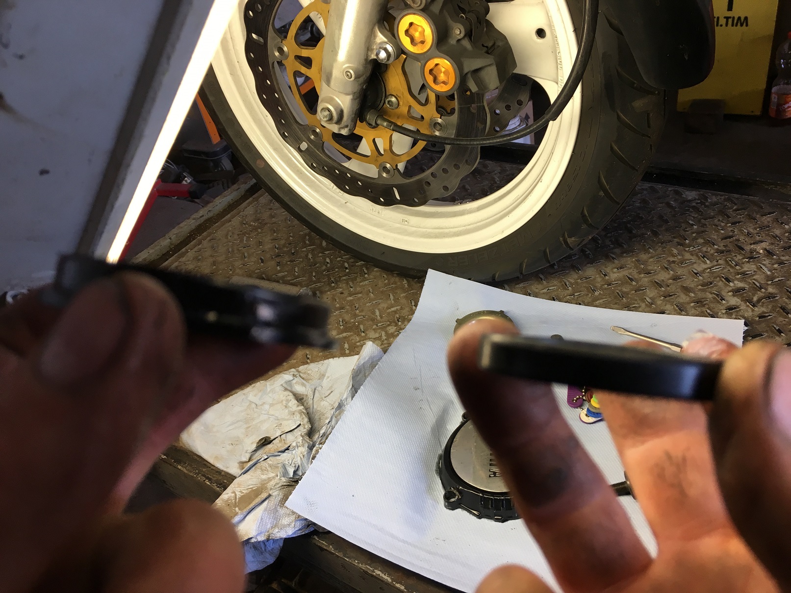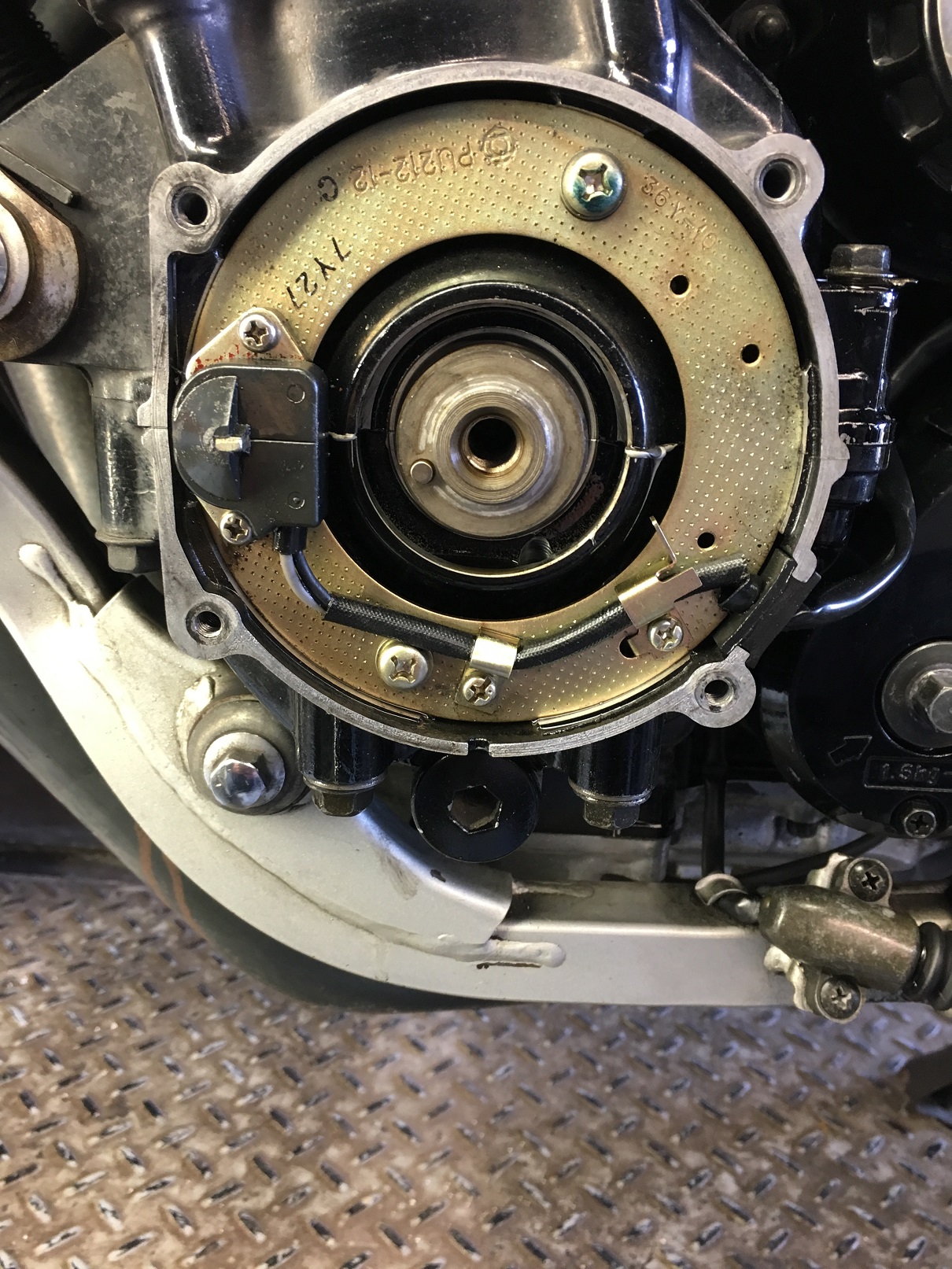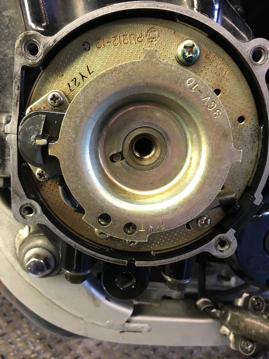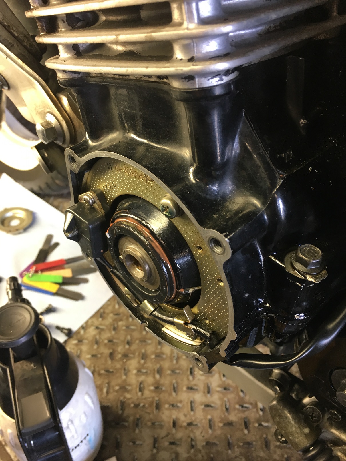 Guten Morgen, dauerte leider durch Umbauaktivitäten am Haus etwas länger, bis ich die Reparatur hier reinstellen konnte. Ich habe mich an Stefans Tipp gehalten und die Reparatur auch so gestartet. Eingebaut habe ich den Original Simmerring von Yamaha. Kostet zwar ca. 40,- €, aber er hat auch in der Lippe die Spirale zur Rückförderung von Öl. Ich denke, die Investition war richtig und nicht eine günstige Variante aus dem Ersatzteilgeschäft zu nehmen, welche vielleicht diese Öl-Rückförderung nicht hat. Ablauf der Reparatur: Deckel für den Zündgeber einfach abschrauben und anschließend das rotierende Teil der Zündanlage demontieren. Kann man eigentlich nichts falsch machen, außer daß die Kreuzschlitzschrauben (X) etwas schwierig aufgehen. Den alten Simmerring habe ich mit Hilfe von Haken und kleinem Schraubendreher vorsichtig demontiert und darauf geachtet, daß die Laufflächen innen und außen nicht beschädigt werden. (Evtl. kann man auch mit zwei in den alten WeDi eingedrehten "Spax"-Schrauben packen und ziehen.) Man muss dazu schon etwas Kraft aufbringen, denn der Hinterschnitt muss herausgezogen werden. Der original eingebaute Simmerring hat einen Hinterschnitt, welchen das Ersatzteil nicht hat - sonst wäre die Montage von der Zündungsseite auch nicht möglich (siehe Foto). Anschließend die Laufflächen mit feinem Schmiergelpad (rot) sauber geputzt und das immer schön in radialer Richtung - siehe braune Ablagerungen auf der Welle, Den Simmerring eingefettet aufgesetzt und mit einer vom Durchmesser passenden Nuss aufdrückt, so daß er hinten am Gehäuse anschlägt. Kontrolle wie weit das sein muss geht nur nach Gefühl. Dabei darauf geachtet, daß die Rückförderlippen nicht beschädigt werden! Alles mit Porsche-Dichtpaste eingeschmiert (braune Paste) und dann den Hallgeber wieder positionsgenau über den Passstift eingebaut (kann man nichts falsch machen mit der Aussparung - siehe auch 1. Foto). Gummidichtung und Deckel der Zündung gereinigt und wieder eingesetzt. Ich habe versucht, die Arbeitsschritte mit Bildern zu dokumentieren, man sieht aber nicht wirklich alles. Nach Zusammenbau die obligatorische Probefahrt. Der Simmerring nässte noch ganz leicht. Rücksprache mit meinem Schrauberkollegen: Der Simmerring muß sich erst einlaufen und diese Information ist auch richtig. Nach ca. 200 km hat die Leckage vollkommen aufgehört und der Simmerring ist jetzt dicht.