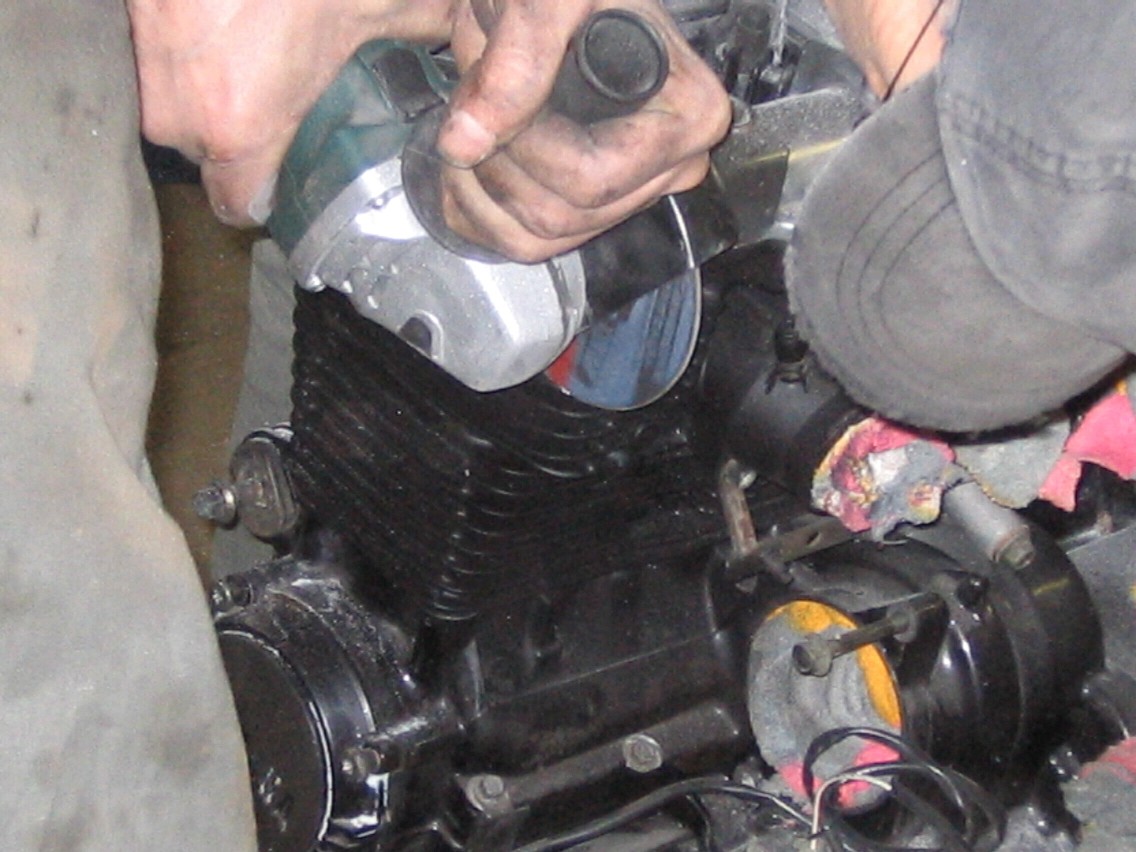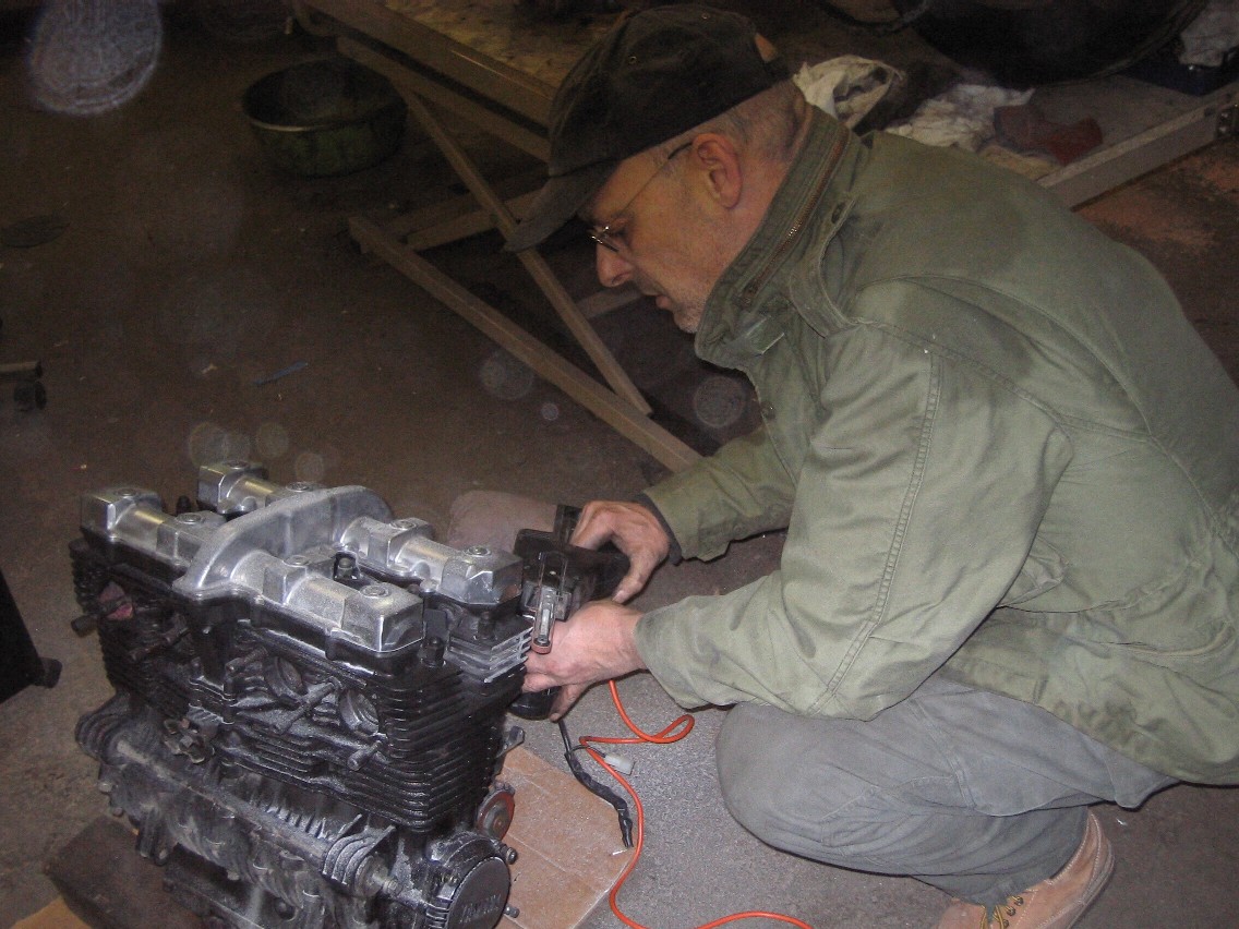 Nachdem nun beide Motoren frei zugänglich sind, ist sowohl das Wechseln der vorderen Halterungen bzw. deren Messing-Buchsen vom 3YA-Motor zum XJR-Motor als auch das Kürzen der Kühlrippen am XJR-Zyl.-Kopf und das Montieren der hinteren Motorhalterung an der Reihe. Der Reihe nach: