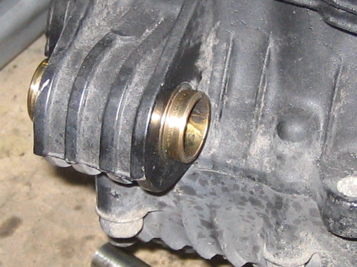 die beiden Gummipuffer, die als Widerlager für den Motor am Rahmen