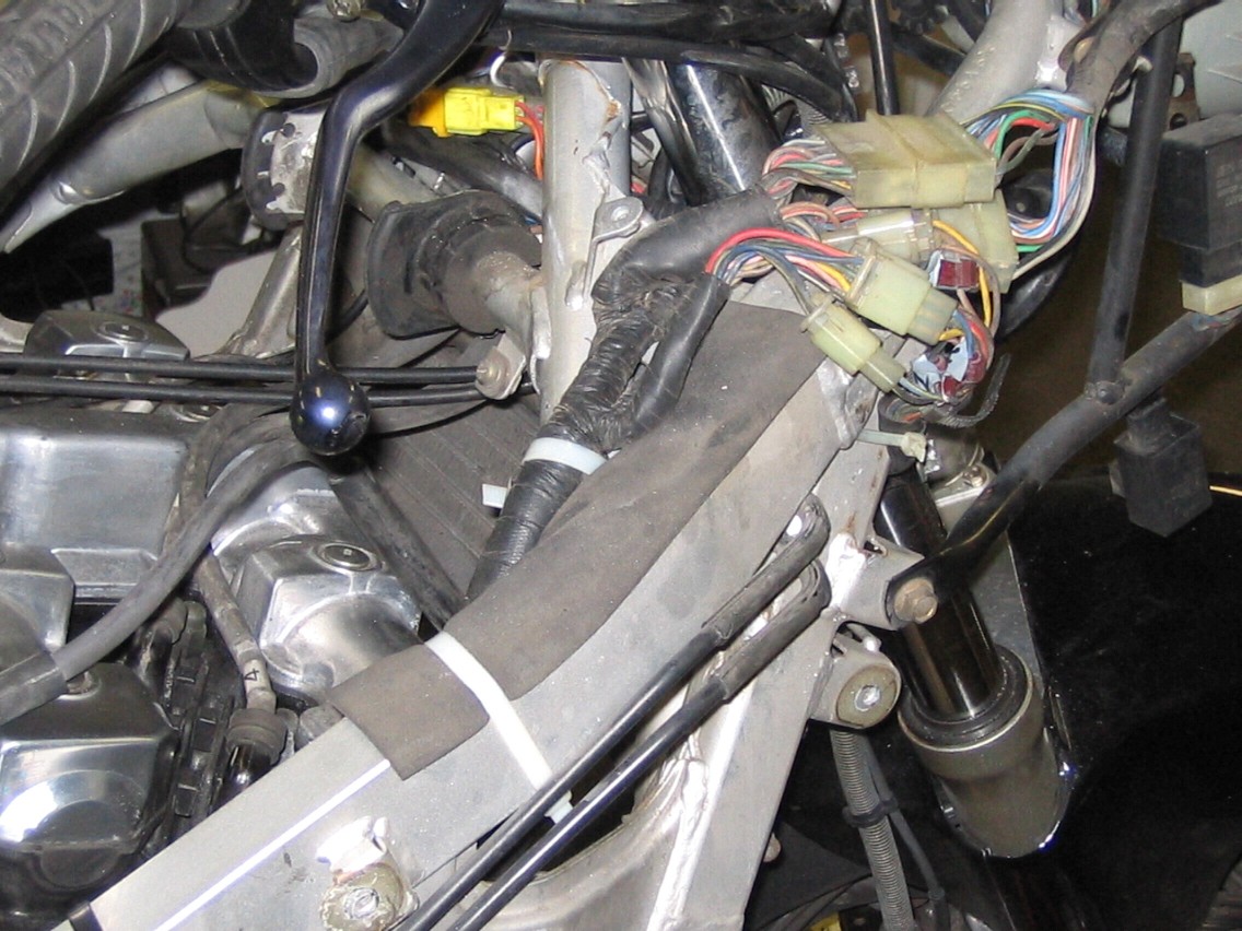 D - demontiert werden müssen: D 1. Auspuffanlage komplett und Halterung unter dem Motor (das gibt nachher beim Einbau mehr Platz zum Rangieren) D 2. Tank / Sitzbank / Seitenverkleidungen D 3. Lufthutzen li. u. re. D 4. Vergaserbatterie D 5. Hitzeschild D 6. Massekabel am Motor und an der Batterie lösen D 7. Deckel LuFi-Kasten links, um besser an die Kabel heran zu kommen D 8. Kabel Lima (Stecker ziehen) D 9. Lima, falls nicht am neuen Motor noch eine dran ist D 10. Anlasser, falls nicht am neuen Motor noch einer dran ist D 11. Kabel Anlasser am Relais (SW10 Mutter)