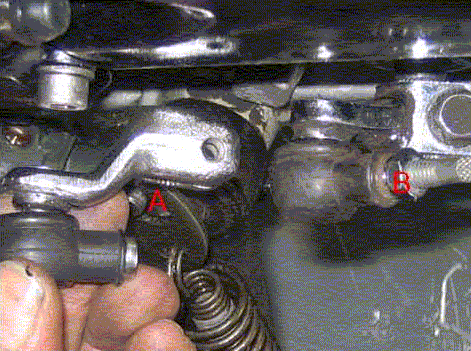 Die neue Anlenkung (Bild 16 „B“ + 17 „B“) an die Schaltwelle, sonst