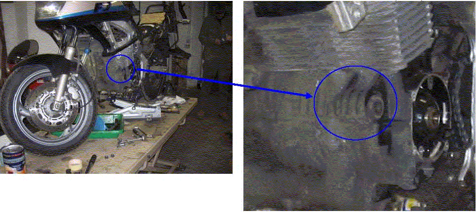 E - Vorbereitung des XJR Motors: E 1. ggfls. Auspuffhalterung abschrauben (gibt mehr Platz zum Rangieren beim späteren Einbau) E 2. die Halterung hinten oben vom 3YA-Motor abschrauben (Bild 4) und samt aller Silentblöcke darin aufheben E 3. die Halterung dieser Halterung (Bild 5) muß! samt der längeren Schrauben (Bild 5 + 6) von dem 3YA-Motor an den XJR - Motor dran. Dann die Halterung aus Pkt. 2. daran fest anschrauben. E 4. soweit noch vorhanden, das Massekabel vom 3YA - Motorblock abschrauben und wech damit bzw. an den XJR-Motor an vergleichbarer Stelle SOFORT! wieder anschrauben, denn nach dem Einbau kommt man an diese Stelle nie mehr heran! E 5. die Zündungsplatte samt Zubehör (vergl. Bild 20) des XJR-Motors etc. wird erst demontiert und gegen die der 3 YA ausgetauscht (so sie denn überhaupt noch vorhanden ist), wenn der Motor im Rahmen hängt und sowohl Ritzel samt Kette als auch der Bremshebel wieder ordentlich montiert sind, also eigentlich ziemlich zum Schluß.