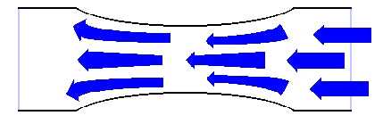 Rohr strömt und den engeren Bereich passiert, muß sie an