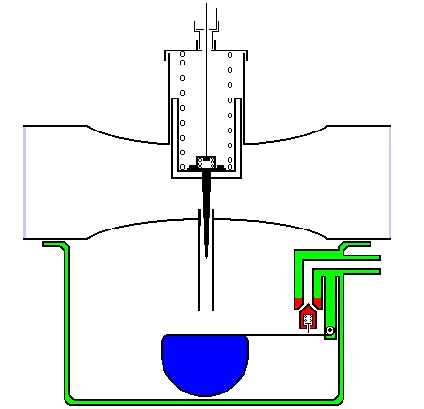 Die Bauteile sind im Schwimmergehäuse (grün)