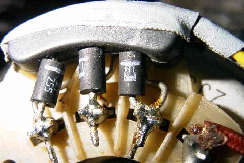 Über die drei Dioden wird bei laufendem Motor die