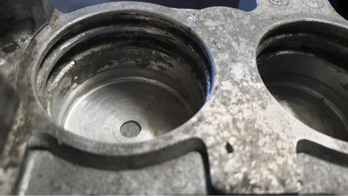 Demontage : Sättel teilen 2-3 mal WD 40 in die Ringspalte um die Kolben herum auftragen und einwirken lassen - es löst schon mal ein wenig den Dreck und hilft beim Herausrutschen. Mit einem der beiden Haltepunkte im Schraubstock fest einspannen. Ein Tuch so um die Sattelhälften legen, dass es die Kolben auffängt, wenn man mit Druckluft in eines der Löcher pustet. Dabei die beiden Anderen mit den Fingern zu halten. Ein anderer Weg ist schlicht den ersten Kolben, der sich bewegt und heraus gekommen ist, nach Reinigung der Ringe und Nuten wieder samt seiner beiden Dichtungen einzusetzen und mit einer Schraubzwinge zu sichern. Dann wieder Druckluft und es sollte "Plopp" machen, sprich der 2. Kolben sollte "kommen". Das Ganze bei beiden Sattelhälften.