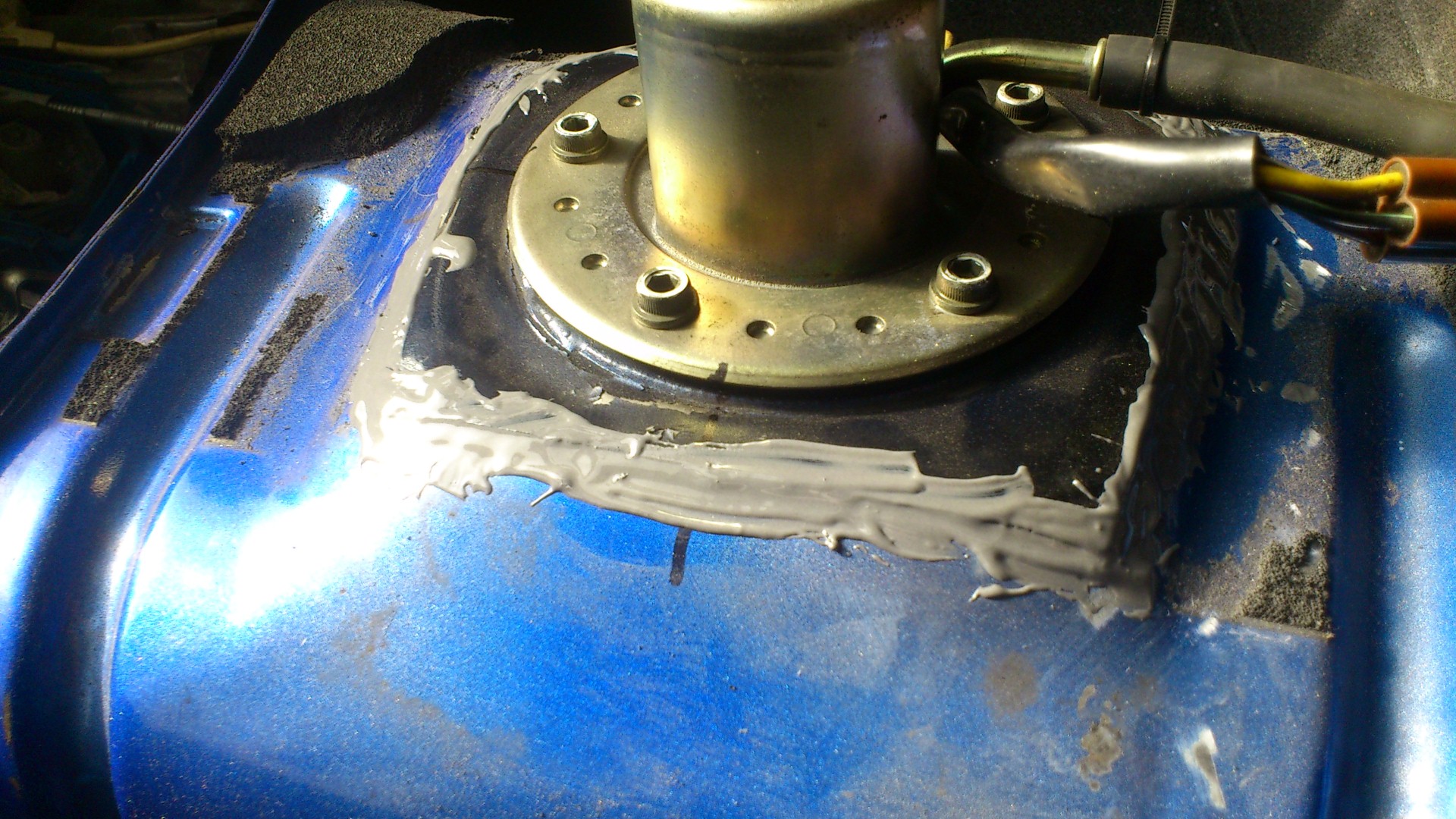 mischen, auf dem Stutzen auftragen und Stutzen auf den Tank legen - die