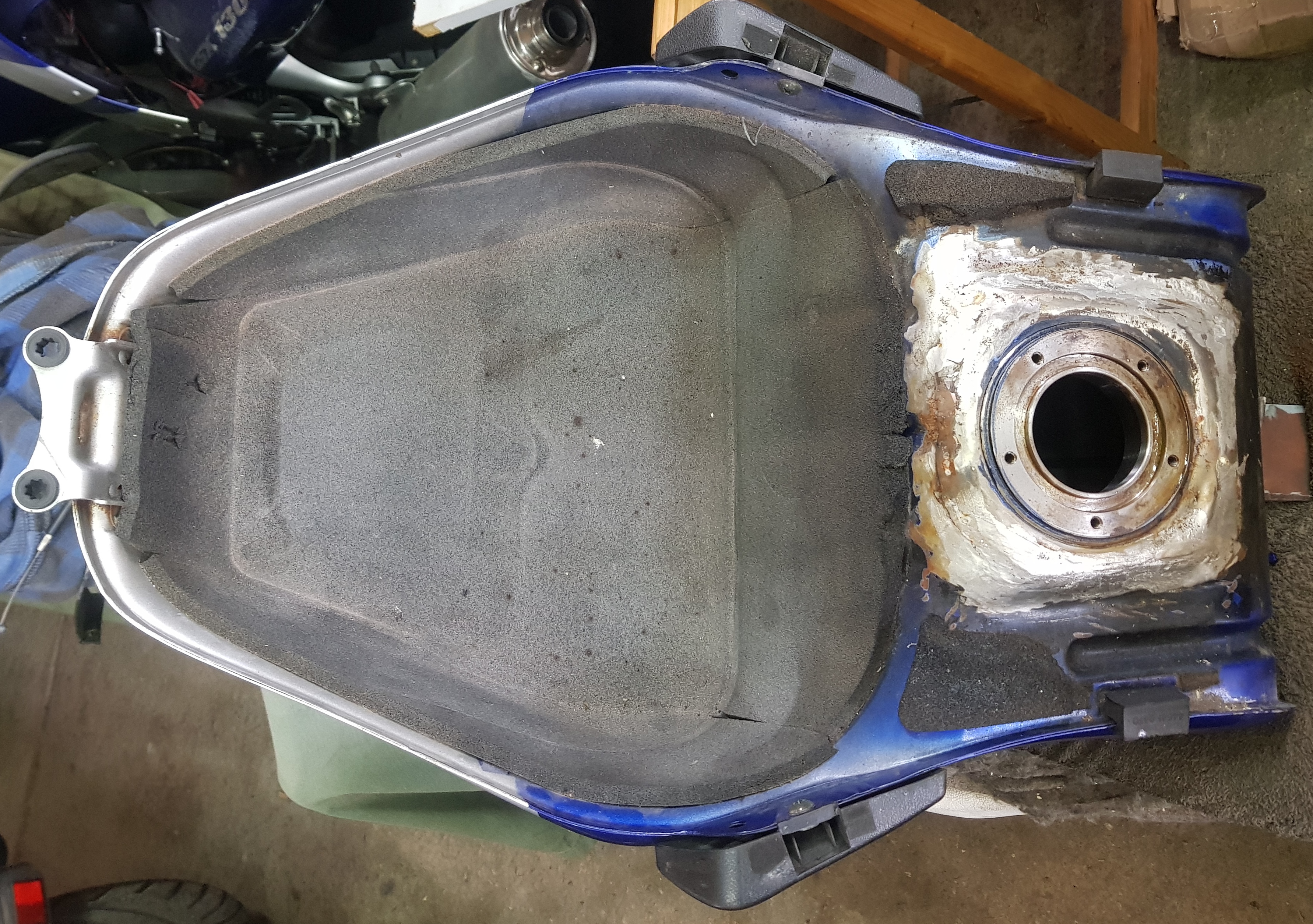 Eine vollkommen andere Alternative wäre, irgend einen Tank der Bj. ab 2001 - ´07 plus einen Bagster-Tanküberzug in Motorradfarbe, in meinem Fall in blau / silber, zu verbauen. In rot-schwarz gibt´s die Bagster übrigens auch. ;-)