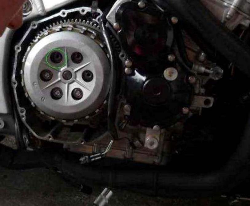 Sodele – nun aber wirklich zum eigentlichen Thema: dem Kupplungsbolzen einkleben Als Erstes: Motorrad auf den Seitenständer stellen. Nun die rechte Seitenverkleidung demontieren, um an den Kupplungsdeckel zu gelangen. Die Kupplungsdeckelschrauben entfernen und den Deckel runterziehen Keine
