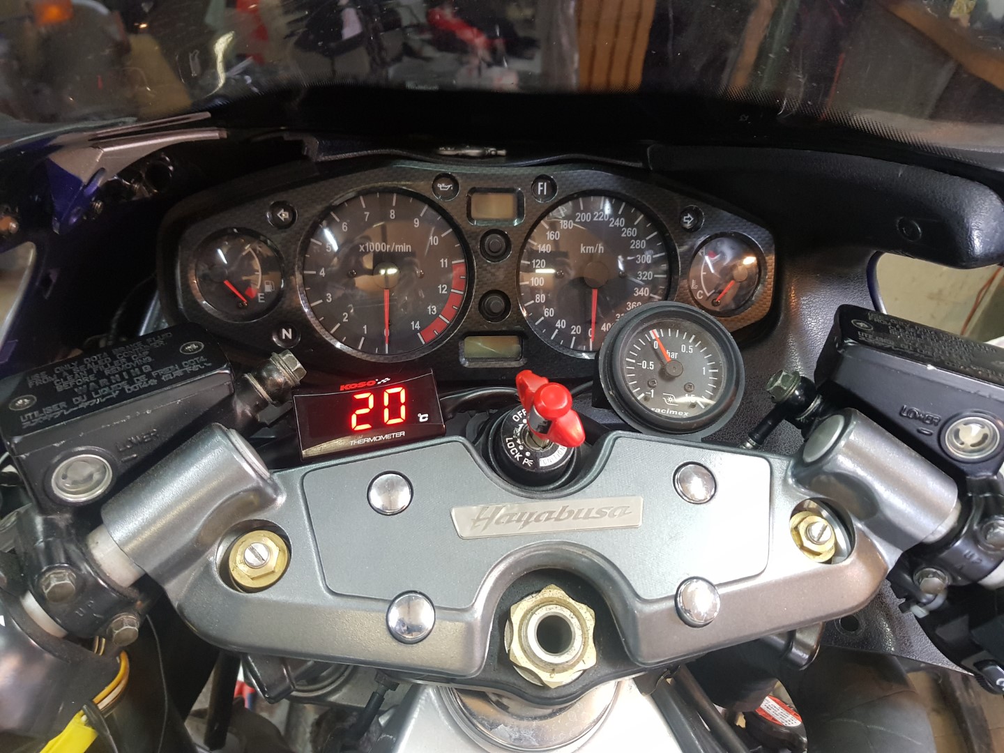 Hierzu gibt es fertige Bauteile von "Koso" die bestens miteinander harmonieren : 1. Die Anzeige 2. Der bei der Hayabusa dazugehörende Temperaturfühler mit M14 x 1,25 Gewinde