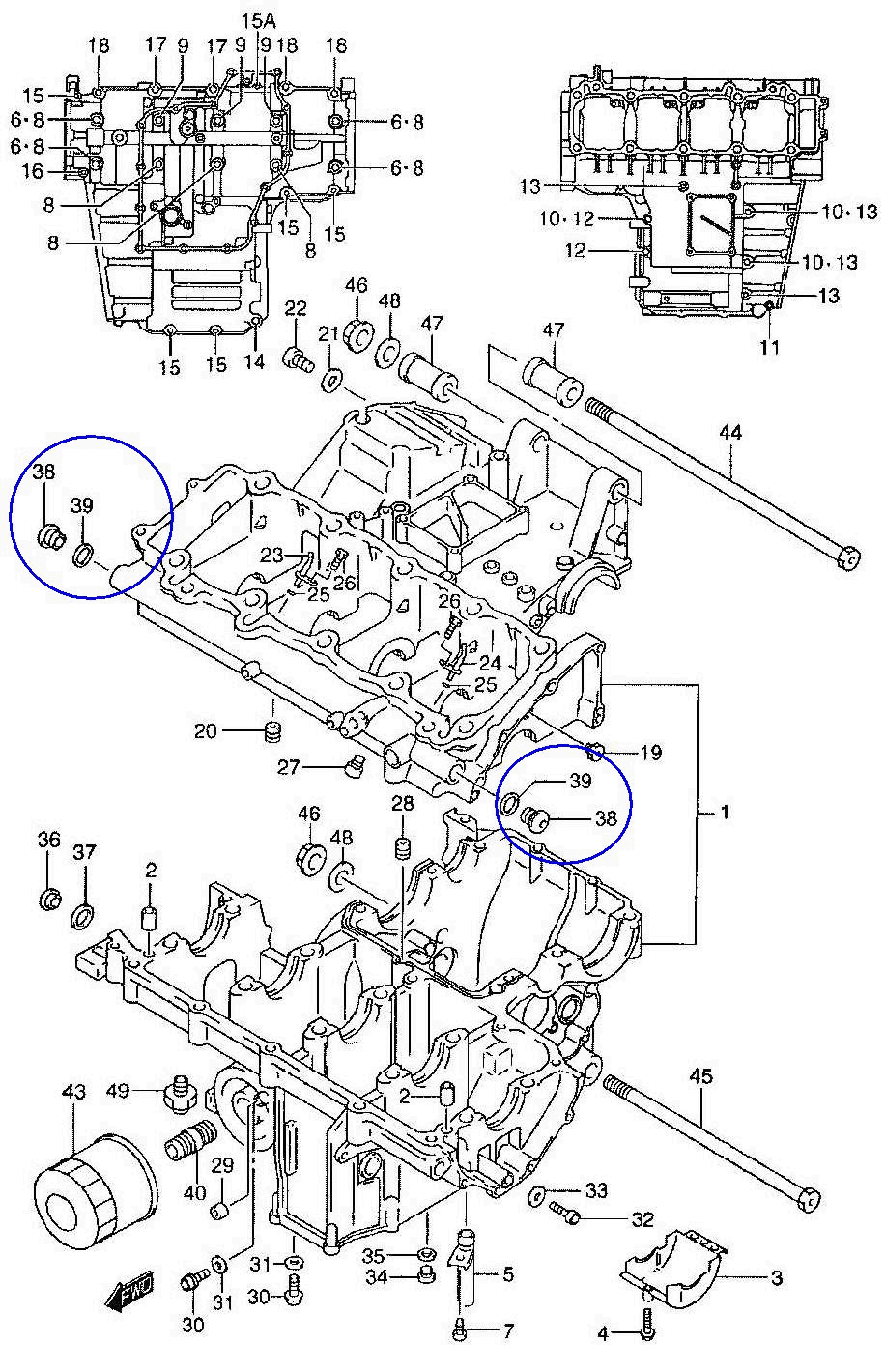und die Einbaustelle(n) in der Ölgalerie des Getriebegehäuses (#38 / blaue Kreise) - bei Gen1 und Gen2 identisch, wie auch die Gewindegröße u. - steigung