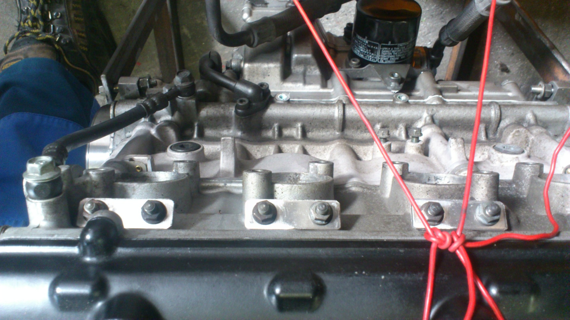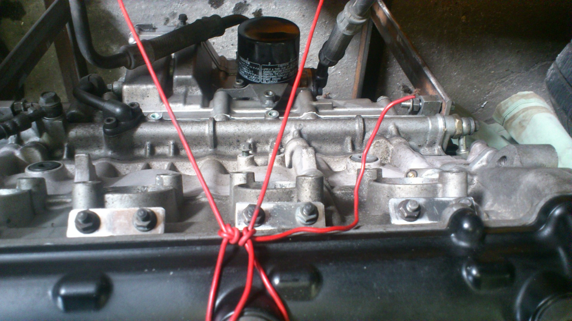 Das rote Kabel hatte ich her genommen, um den Ölkühler ein wenig hoch zu halten, damit mir die Schläuche nicht geknickt werden.