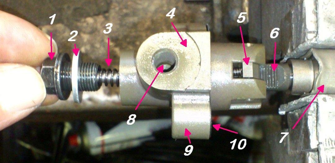 Hi Leutz, für alles Weitere, das ich hier zu diesem Thema beschreibe, mal ein Foto und MEINE Begriffsbestimmung & Bauteilbenennung, um nach Möglichkeit alle Verständnisprobleme von vorne herein auszuschließen. Im WHB ist auf Seite 3-125 noch der alte Spanner abgebildet – im Rahmen einer Nachrüstungsaktion seitens Suzuki ca. in 2001 oder so wurde dieser u.a. Spanner mit Öldruck - Unterstützung (#8) verbaut.