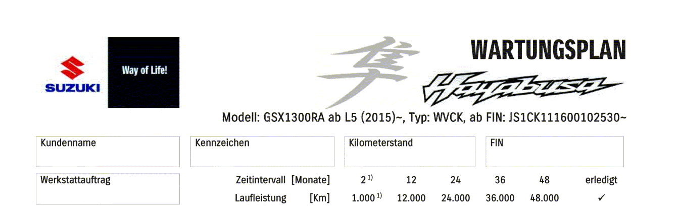 auf Grund aktueller Informationen gibt es einen neuen Wartungsplan für die L5 / Bj. 2015 und jünger ! Ein paar Arbeiten bzw. deren Intervalle haben sich geändert. Unten ist die Kopfzeile dieses neuen Plans abgebildet bzw. ganz unten als pdf zum herunterladen hinterlegt. Geht die Laufleistung irgend wann einmal darüber hinaus, sollte die Erweiterungen im Plan zur Gen II der Bj. ´08-´14 einen guten Anhalt geben, in welchem Umfang diese Tabelle dann nochmals erweitert werden sollte.