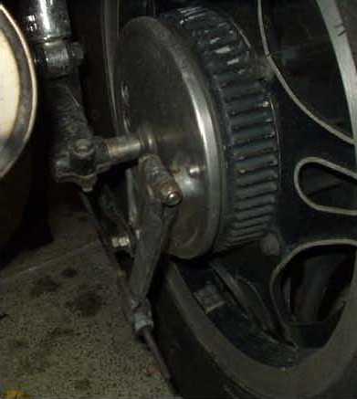 Mit der Klinge wurde die Bremsscheibe „verlängert“ und dann ging´s ans …. Schätzen (würde ich so sagen), leider waren es 4,3 mm und die Verschleißgrenze liegt bei 4,0. Mist, wieder nix, also müssen wir noch schell einen dummen Spruch ab lassen: „Sie fahren wohl nur Autobahn, oder ?“ Jetzt ging´s aber los, wer mich kennt (gut, wie sollte er das wissen), weiß, daß ich ein Autobahngegner bin.