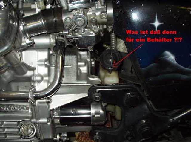 Ich habe ihn dann freundlich darauf hingewiesen, daß es sich hier um ein wassergekühltes Motorrad handelt und er vor dem Ausgleichsbehälter kniet.